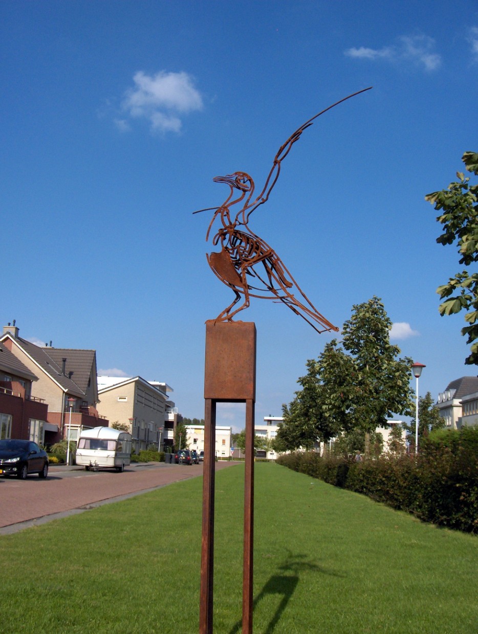 La Paloma de la Paz Posted on13 februari 2019 By Kees Machielsen Sculptuur uit 2007. Cortenstaal. Hoogte 260 cm inclusief sokkel. De Hazelaar in Tilburg.
